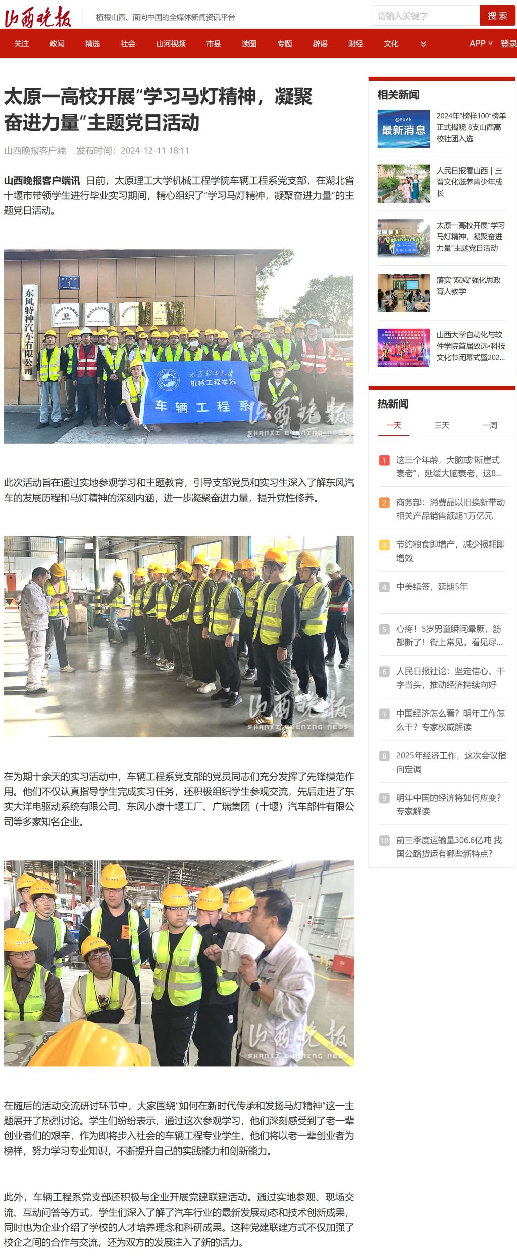 日前,Beat365官方网站车辆工程系党支部,在湖北省十堰市带领学生进行毕业实习期间,精心组织了“学习马灯精神,凝聚奋进力量”的主题党日活动。