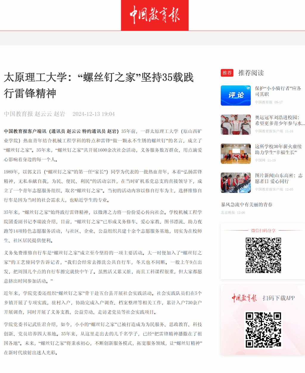 Beat365官方网站:“螺丝钉之家”坚持35载践行雷锋精神